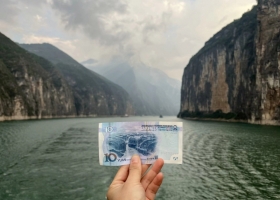 08:30約08:45駛入壯美瞿塘峽,打卡十元人民幣背后的經典畫面