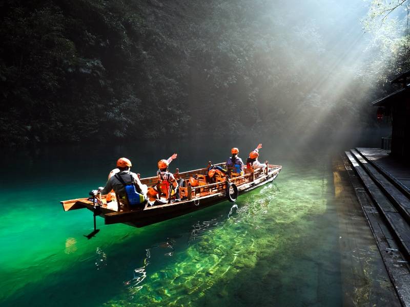 早餐后乘車前往【石門河地心谷】石門河旅游區位于湖北建始縣高坪鎮,八百里清江的支流。景區總投資3.5億元。景區是典型的喀斯特地貌特征,集“幽、險、奇、秀、古”于一體。景區有人類起源遺址,中國南方最久遠的“巴鹽古道”,中國巴人發祥地之一,中國土家族聚集區。石門古風旅游景區地域面積約180平方公里,自然旅游資源與人文旅游資源豐富且頗有特色。石門河景區屬世界珍奇高山喀斯特巖溶嶂谷景觀地貌。峽谷幽深、壁立千仞,曲徑婉轉、銷魂蝕骨;銀河天瀑、流光溢彩,石臼渦槽、鬼斧神工,絕美禪境、千姿百態;雄關漫道、如詩如畫,藤蟒古林、華蓋蔽天,空懸棧道、天人合一;船懸浮游、仰天如縫,獐猴出沒、暗河流金;鴻蒙歲月,大自然創作不輟,探索上帝伊甸園,唯美風度而震撼。